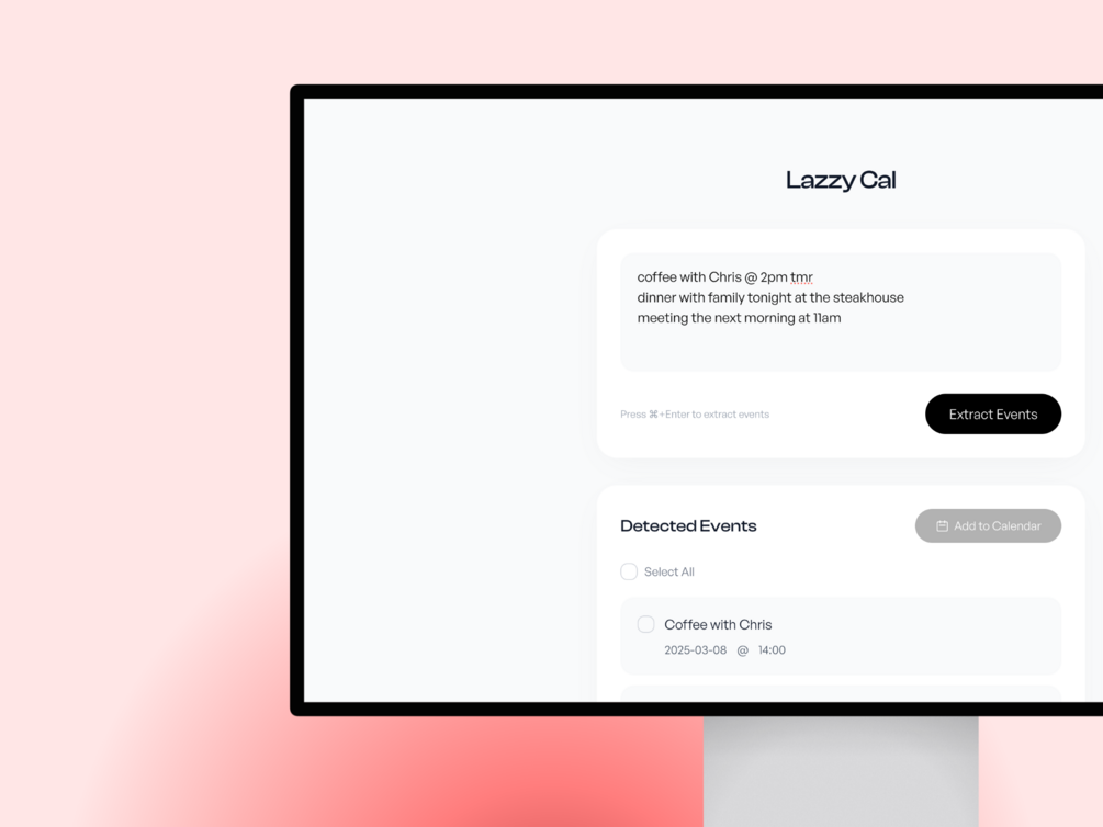 Lazzy Cal uses advanced AI to automatically parse your text into perfectly formatted calendar events. No more manual entry, no more scheduling mistakes.